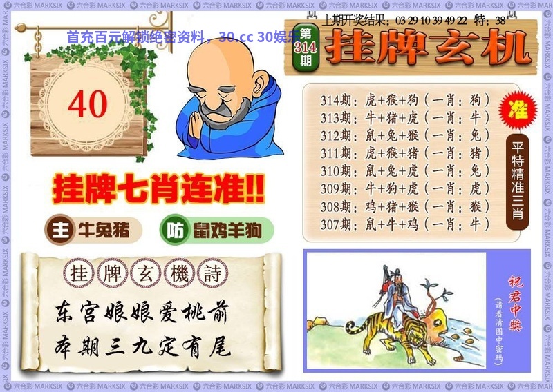 | 315期:九肖【狗鸡马猪虎牛兔龙羊】虎04准 |